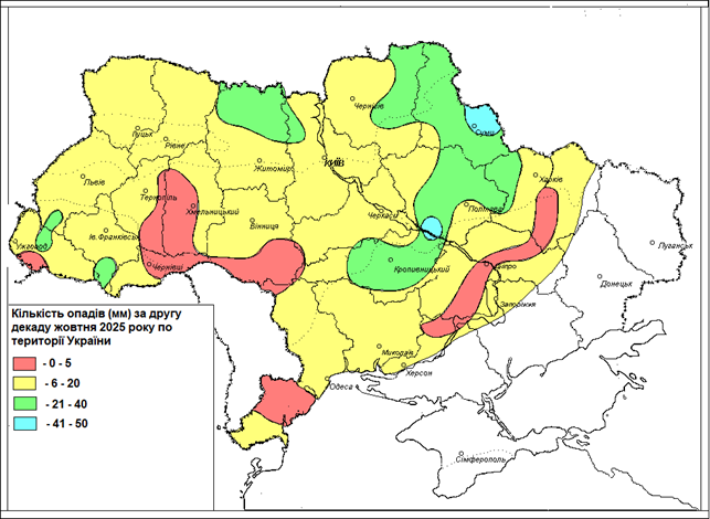 Опади та запаси продуктивної вологи за другу декаду жовтня 2025 року