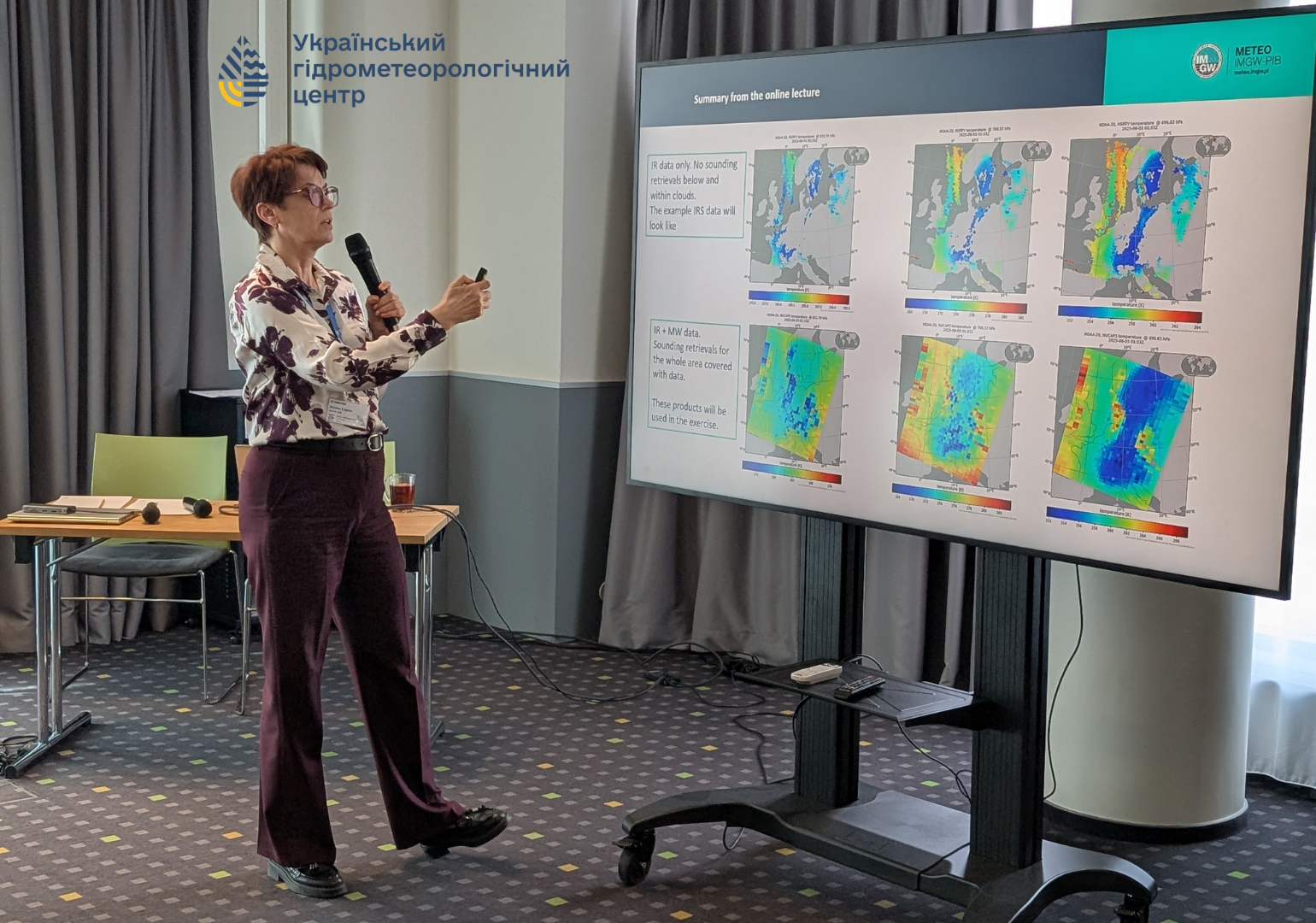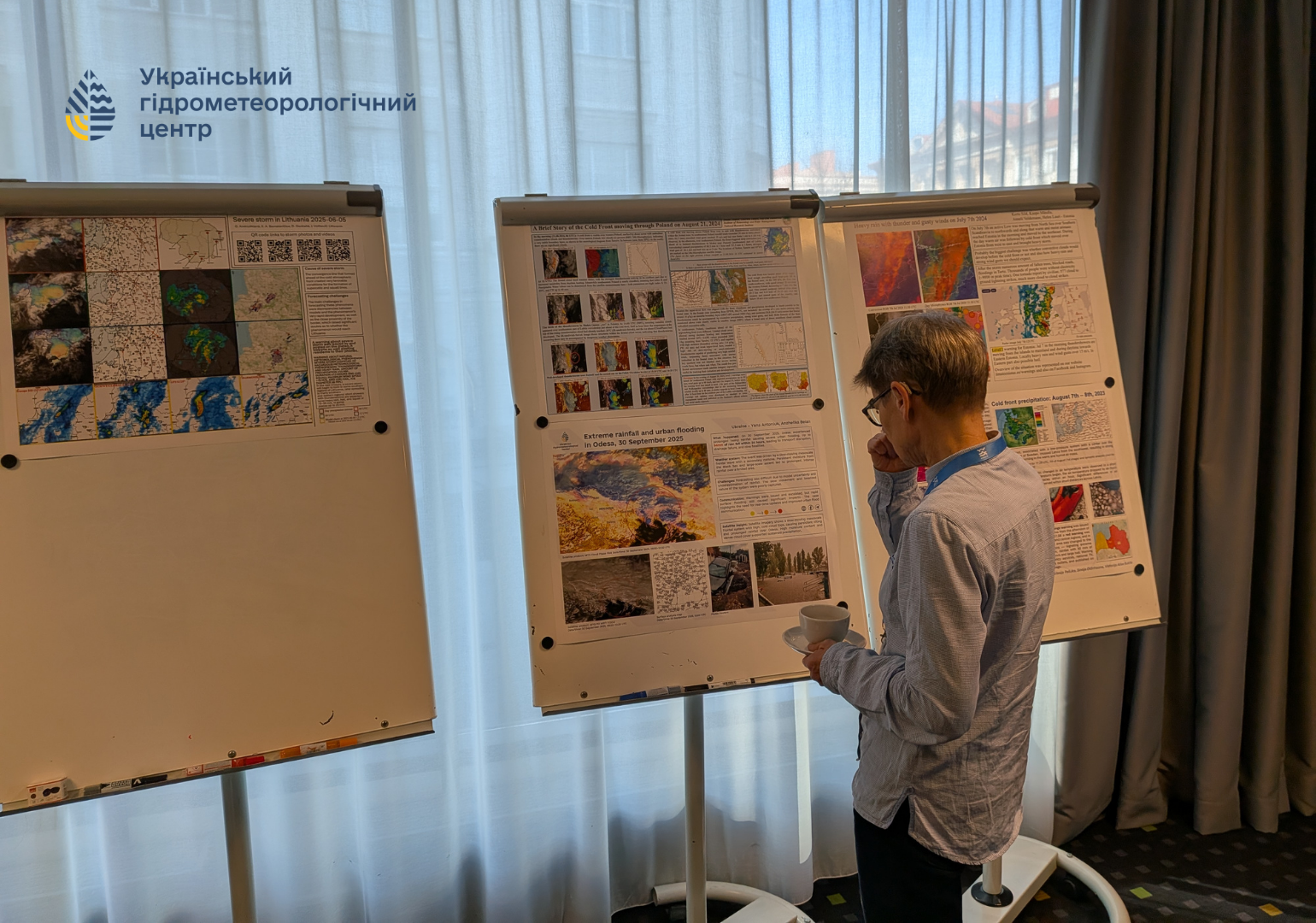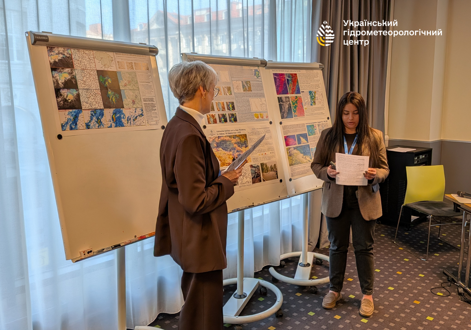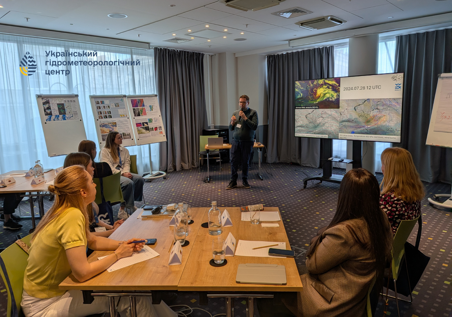 До навчання долучилися також колеги з Гідрометеорологічний Центр Чорного та Азовського морів (м. Одеса), які представили постер із яскравим прикладом фронтальних опадів та опанували нові методи й інструменти роботи із супутниковими знімками для прогнозування небезпечних погодних явищ.