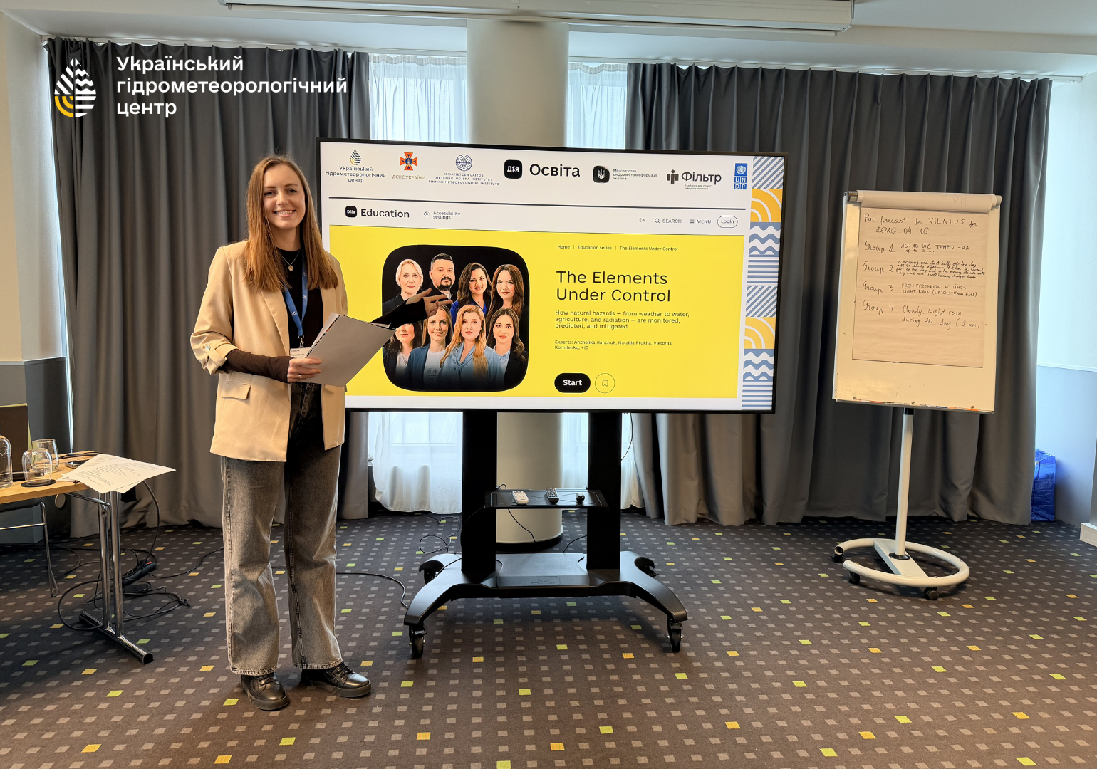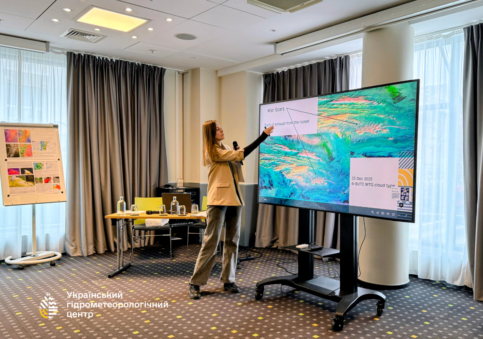 Окремою частиною програми стала тема метеорологічної комунікації. Начальниця відділу комунікації з медіа УкрГМЦ Наталія Птуха, виступила як тренерка з лекцією про сучасні підходи до комунікації погоди, зокрема із використанням супутникових даних. Було представлено практичний досвід Центру, а також освітній серіал «Стихії під контролем», який має англомовний дубляж і може бути корисним для медіа та освітян не лише в Україні, а й за кордоном.